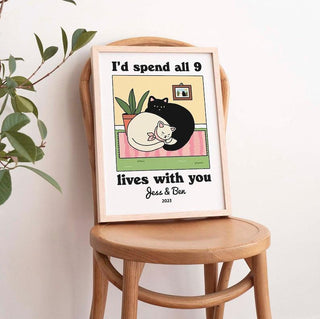 Custom ‘I'd spend all 9 lives with you’ Cat Print