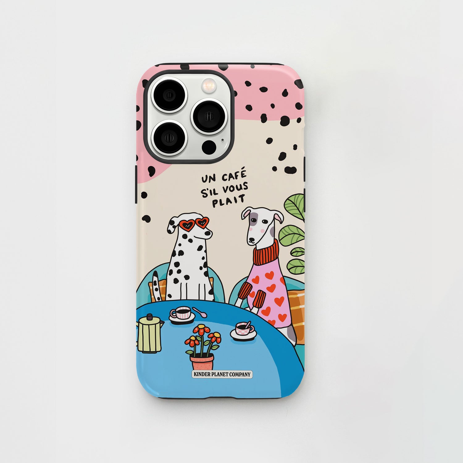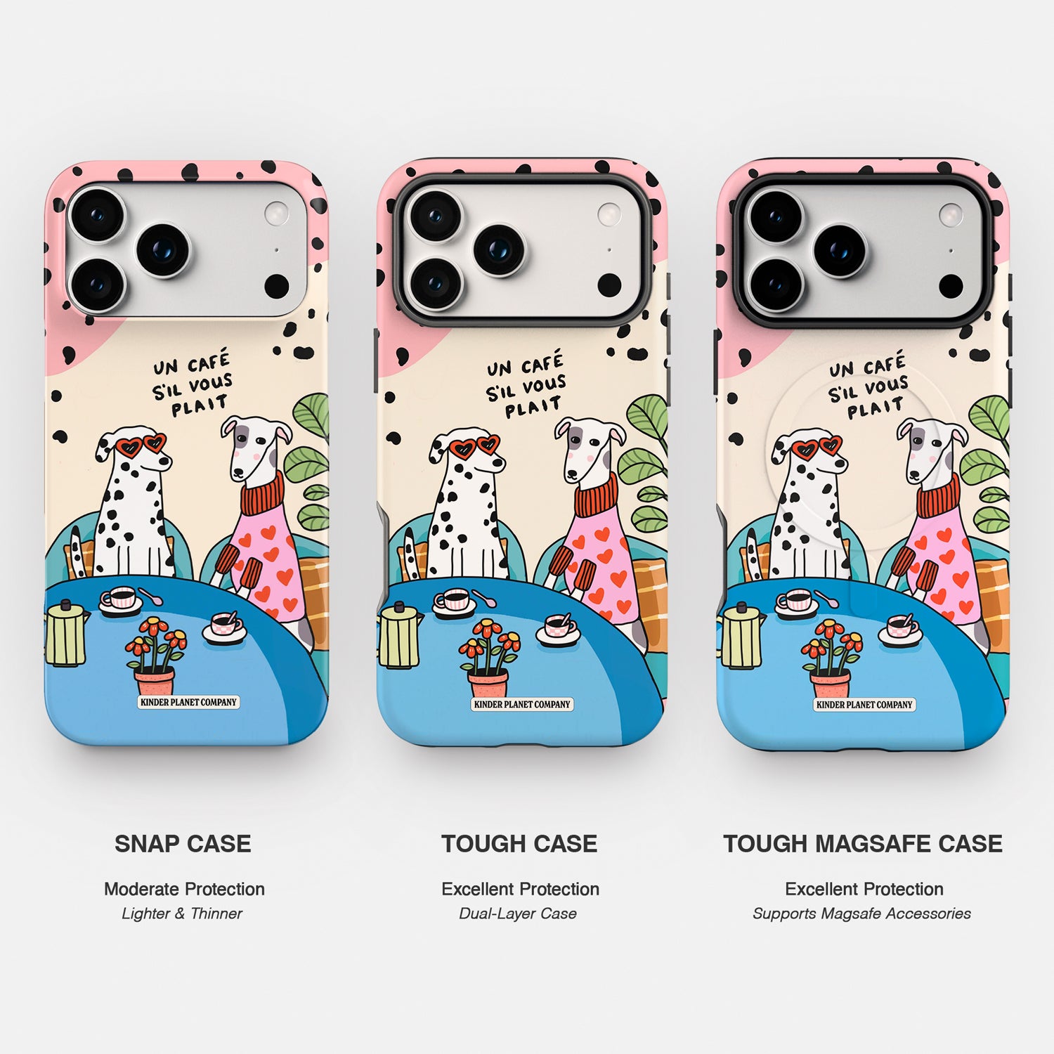 This phone case is perfect for anyone who loves cute pups, café culture, and a dash of Parisian charm! 🐾☕💖