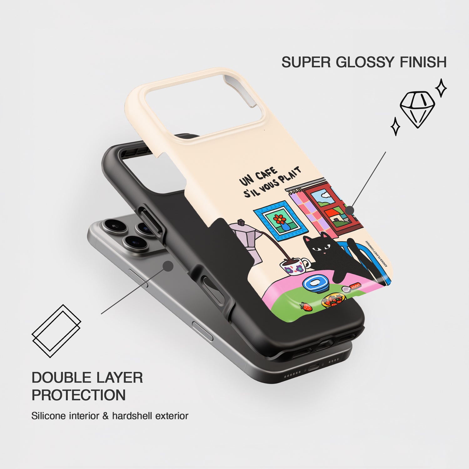 The most adorable cat case for cat mamas and Coffee lovers alike! Our Un Cafe Sil Vous Plait Design is now available as a phone case!
