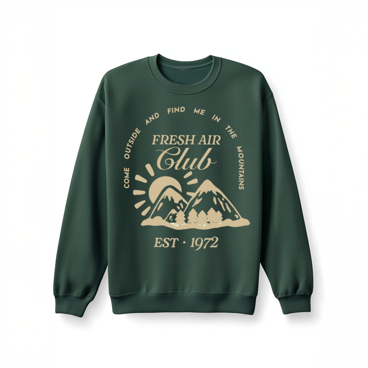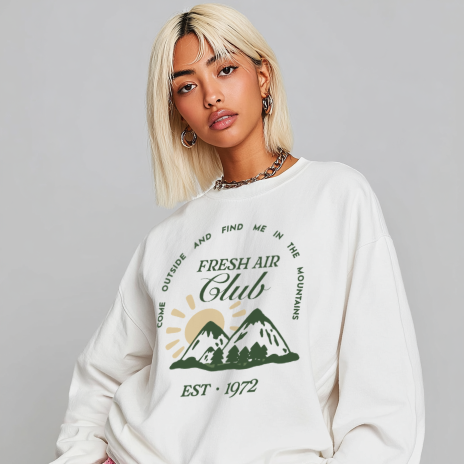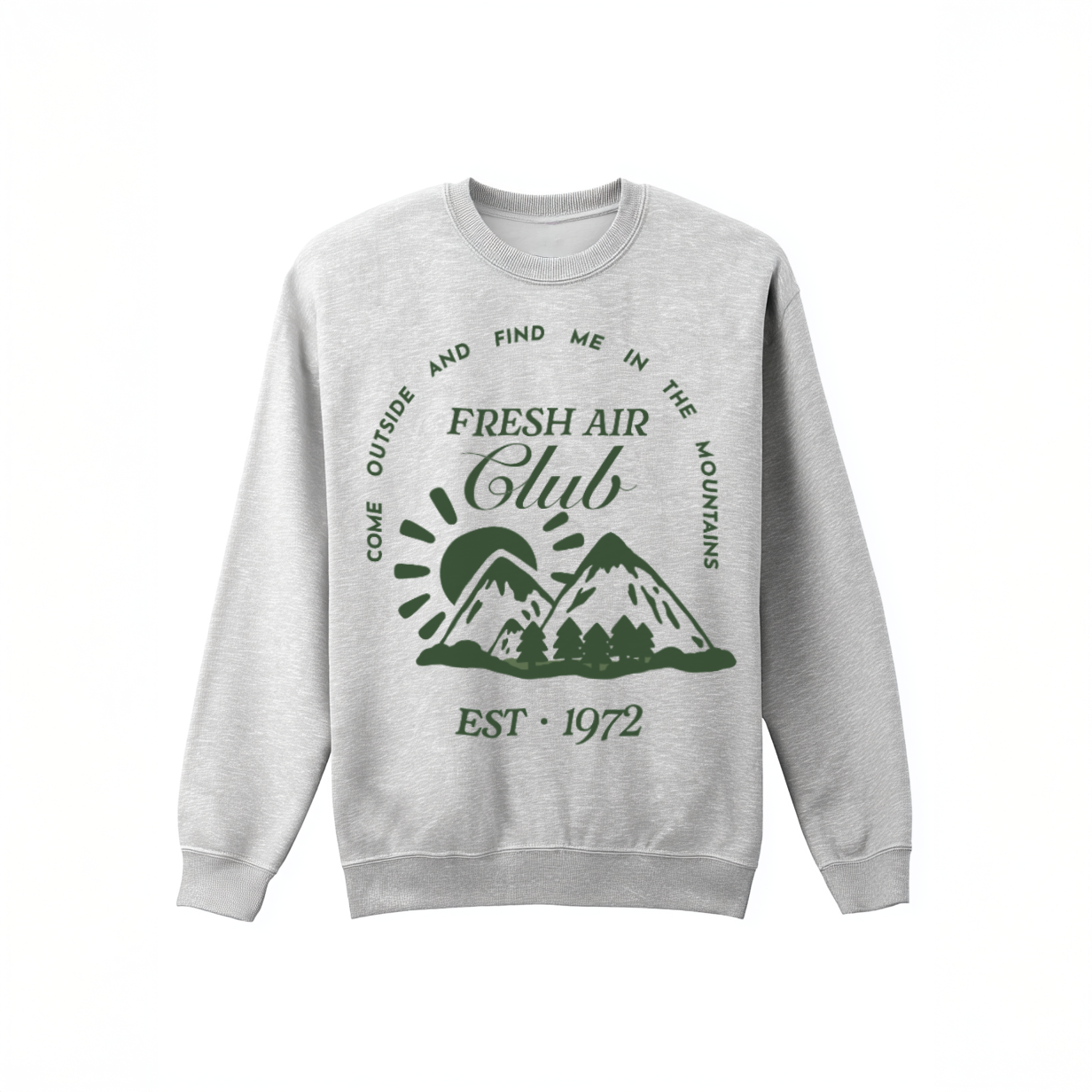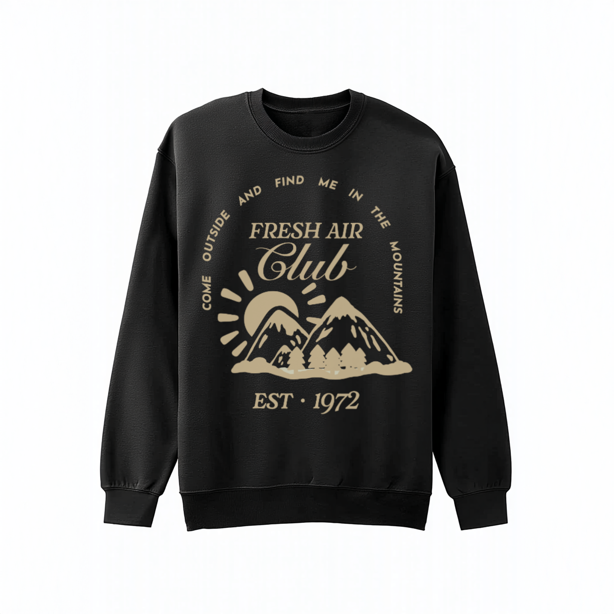 Breathe deep and embrace the outdoors with this Fresh Air Club Sweatshirt 🌄🌲. Featuring a vintage-inspired mountain and sunrise design with the words “Come Outside and Find Me in the Mountains”, this cozy oversized jumper is perfect for hikers, campers, and anyone who feels at home in nature. Soft, warm, and effortlessly stylish, it’s a must-have for outdoor lovers and makes a thoughtful gift for adventurers.