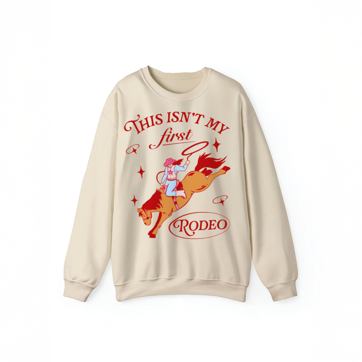 Show off your wild side with this This Isn’t My First Rodeo Sweatshirt 🤠🐎. Featuring a bold cowgirl riding a bucking horse in vibrant retro tones, this cozy oversized jumper brings western flair with a playful twist. Soft, comfy, and perfect for everyday wear, it’s a standout piece for rodeo fans, cowgirl style lovers, or anyone who appreciates a fun western-inspired graphic. Makes a great gift for country music fans and lovers of western fashion.