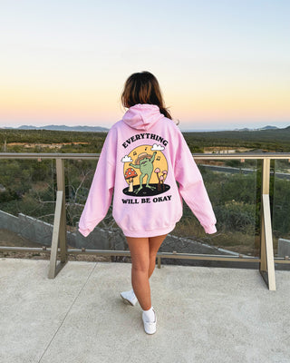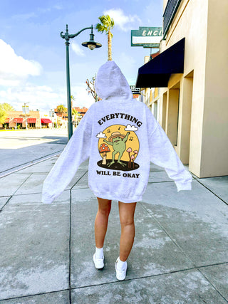 Is there a better way to spread the love than wearing this aesthetic retro tumblr hoodie featuring a frog dancing with a quote that reads 'Everything will be Okay' on it?