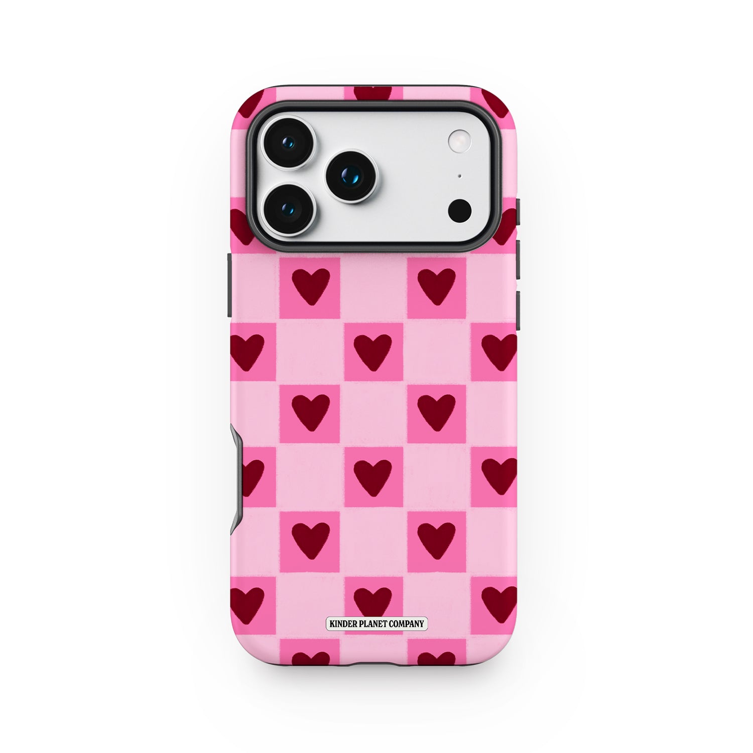 This vibrant case features a juicy twist on the classic checkerboard pattern, with alternating berry-toned pinks and deep red hearts in every square. It’s a playful blend of retro and romantic — made to turn heads and warm hearts.