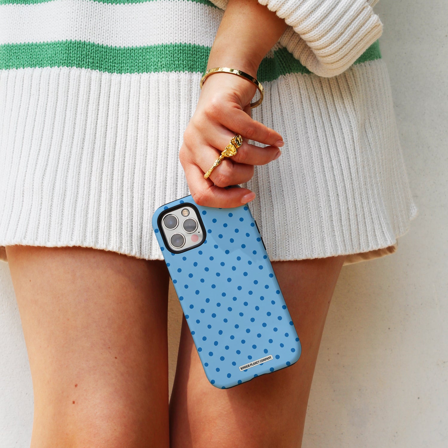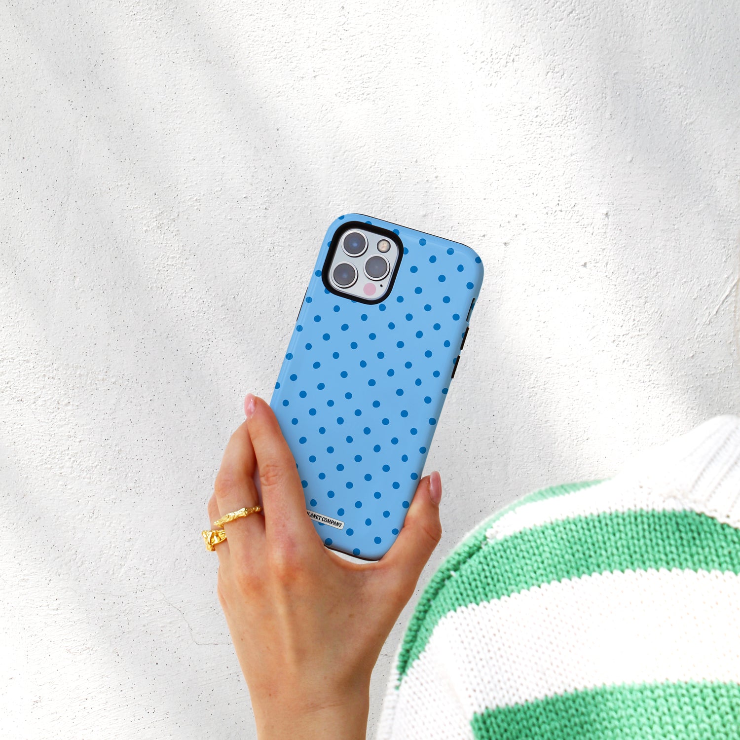 Bluebell Breeze brings a fresh, playful pop to your everyday look. The soft sky-blue base and scattered cobalt dots feel cheerful, easy, and just a little bit chic.