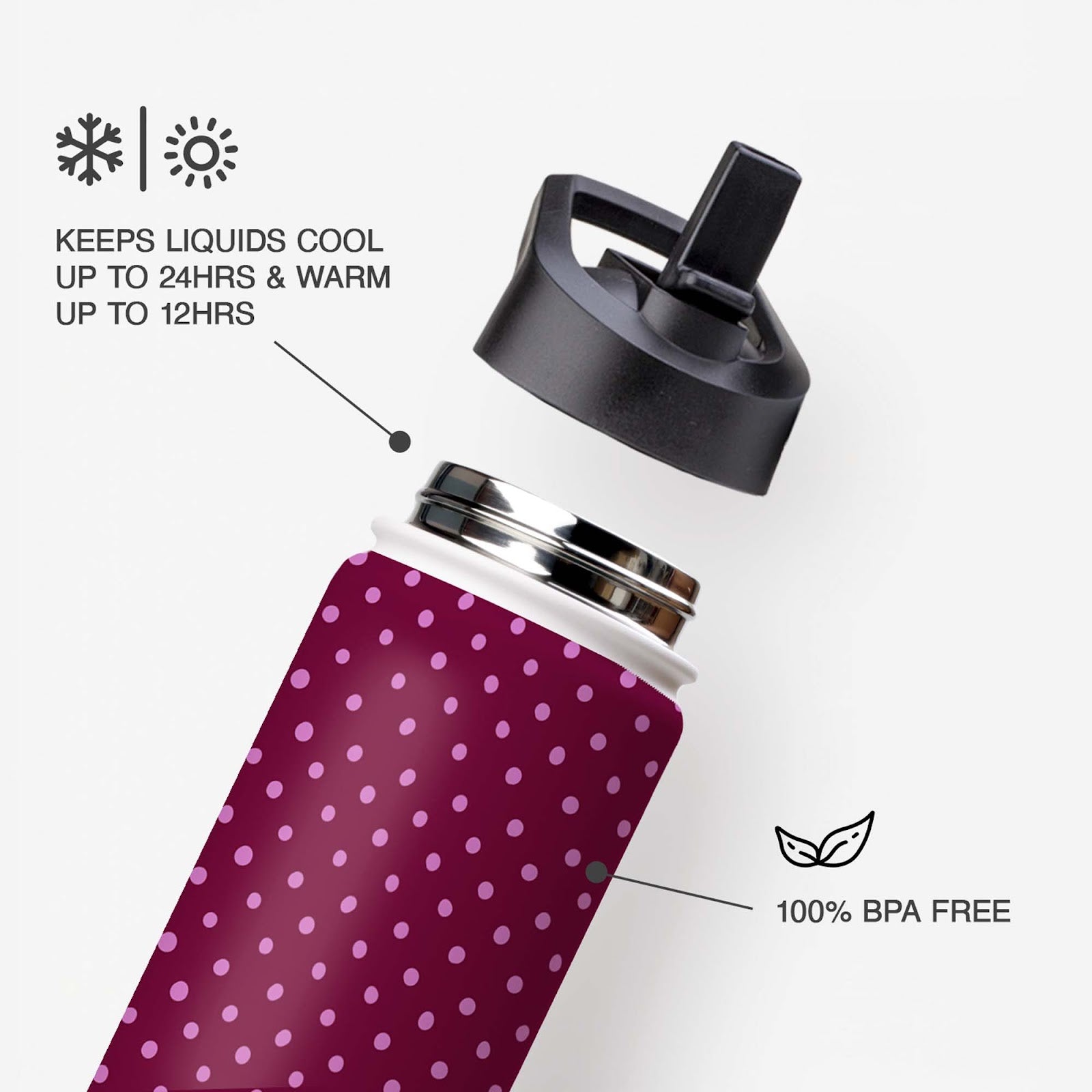Meet your new everyday fave: a burgundy pop water bottle with a playful polka-dot finish that brings cute energy to every sip. Designed to look chic on the go, it’s the kind of accessory that makes staying hydrated feel a little more put-together.
