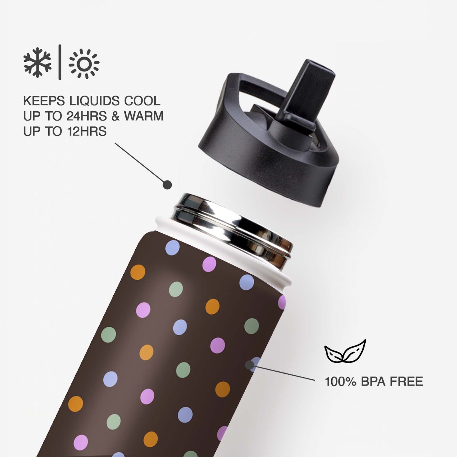 Meet your new everyday sip sidekick: the Chocolate Sprinkles Stainless Steel Water Bottle, finished in a playful polka-dot look that feels cute, polished, and ready to show off.