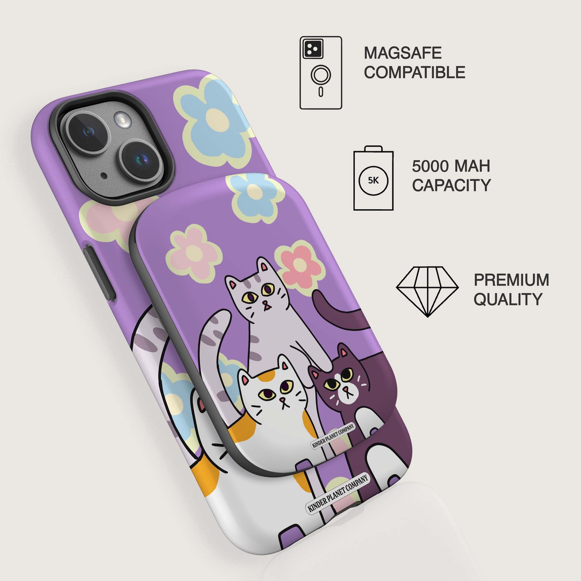 Small but mighty. Stylish and practical. Kinder Planet's Magnetic Power Bank is the perfect solution for keeping your phone charged on the go. Your pocket-sized savior with a 5,000 mAh punch. It’s where sleek design meets Kinder Planet's signature style, made to keep you charged and turning heads wherever you go.