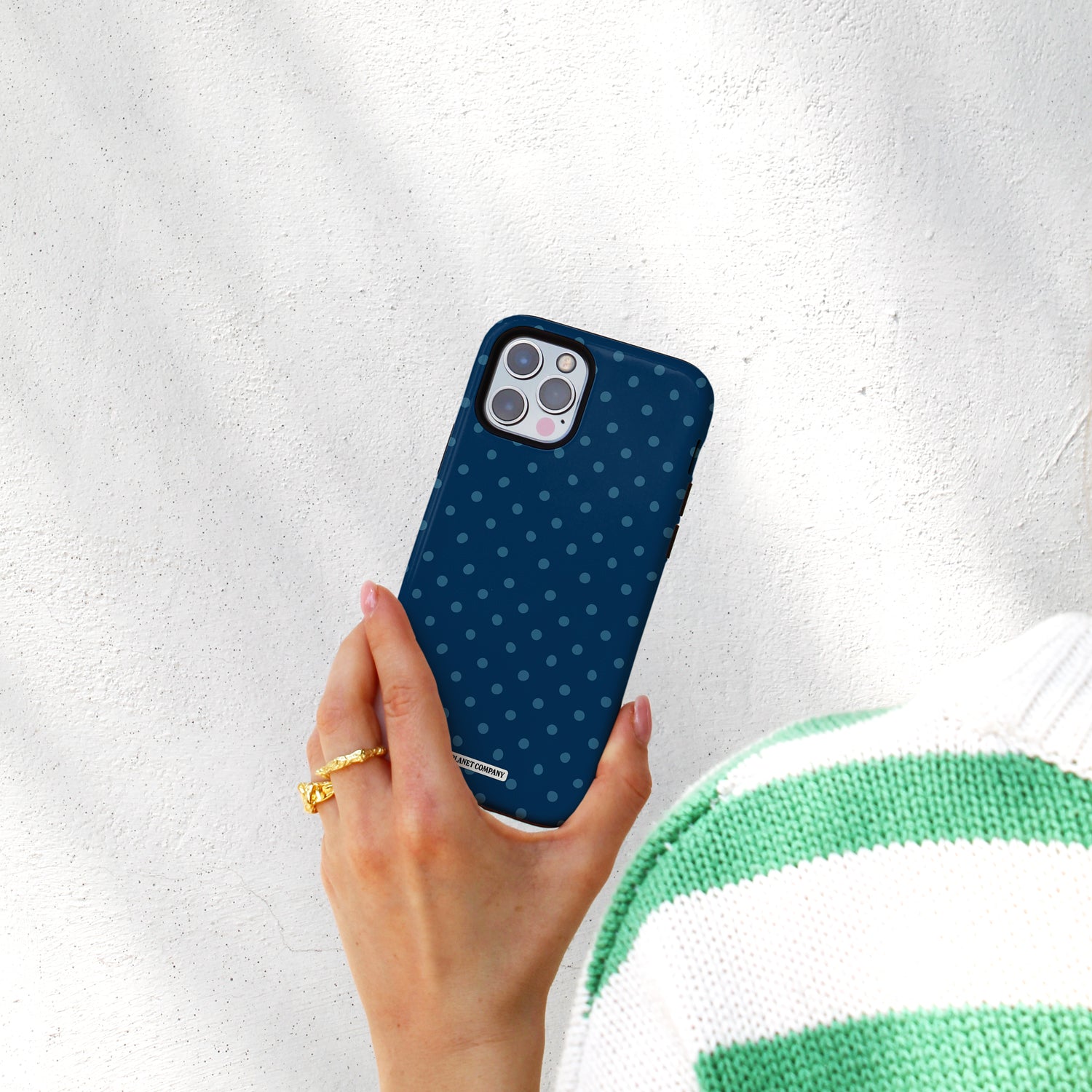 The deep blue polka-dot finish keeps it modern and polished, with just the right amount of retro charm.