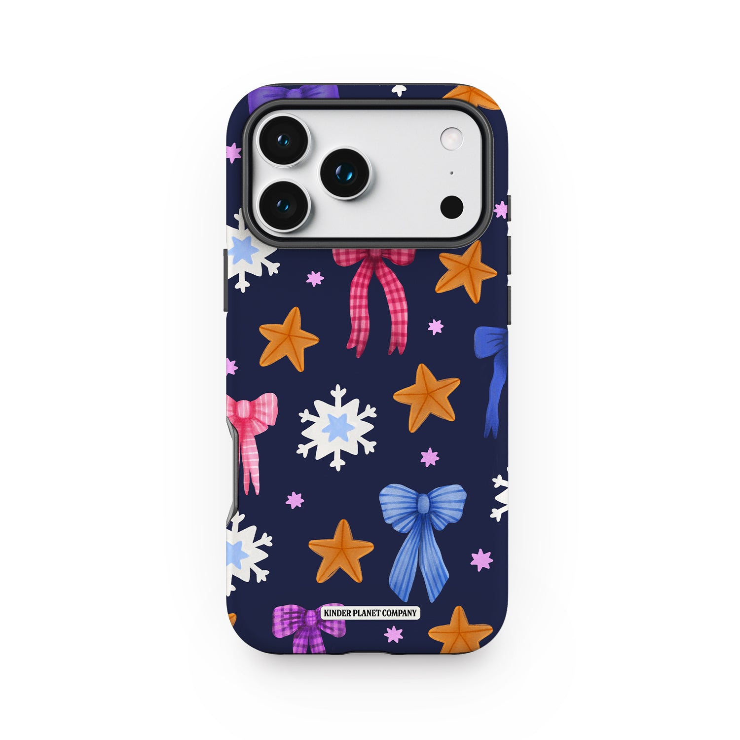 The Polar Midnight phone case captures the joy of winter nights with playful gingerbread stars, snowflakes, and colorful ribbons scattered across a deep navy background. With pops of pink, blue, and warm golden tones, this charming design feels like gift wrap come to life. It’s whimsical, wintery, and made for those who love their holidays with a little sparkle and a lot of cozy.