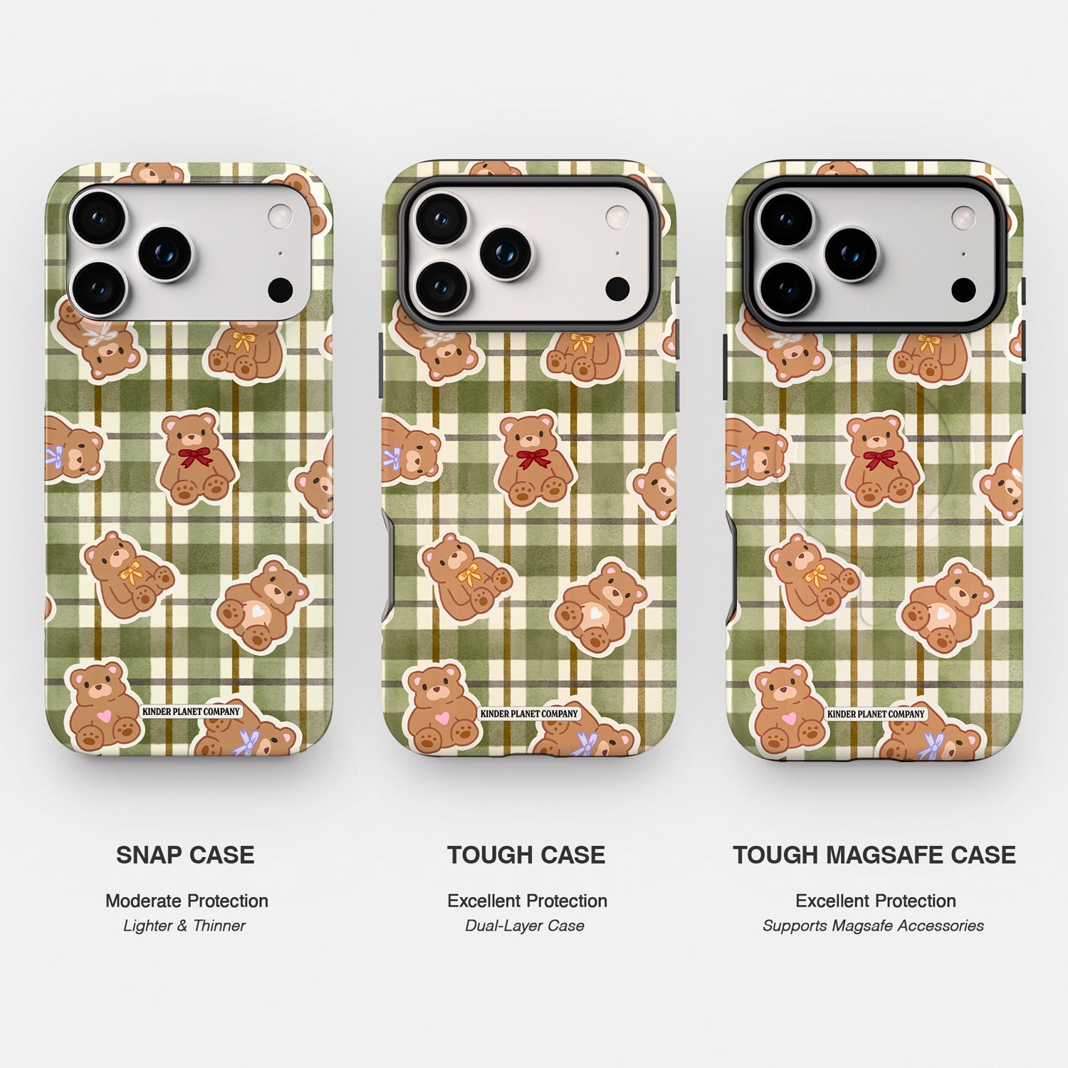 Bringing childhood joy and cozy vibes together, this adorable case features a parade of sweet teddy bears scattered across a soft green plaid background. Each bear has its own little personality, ribbons, bows, hearts, and all, making this case feel extra nostalgic and completely lovable. It’s the perfect cozy accessory for the holiday season (or anytime you need a little extra cuteness in your day).