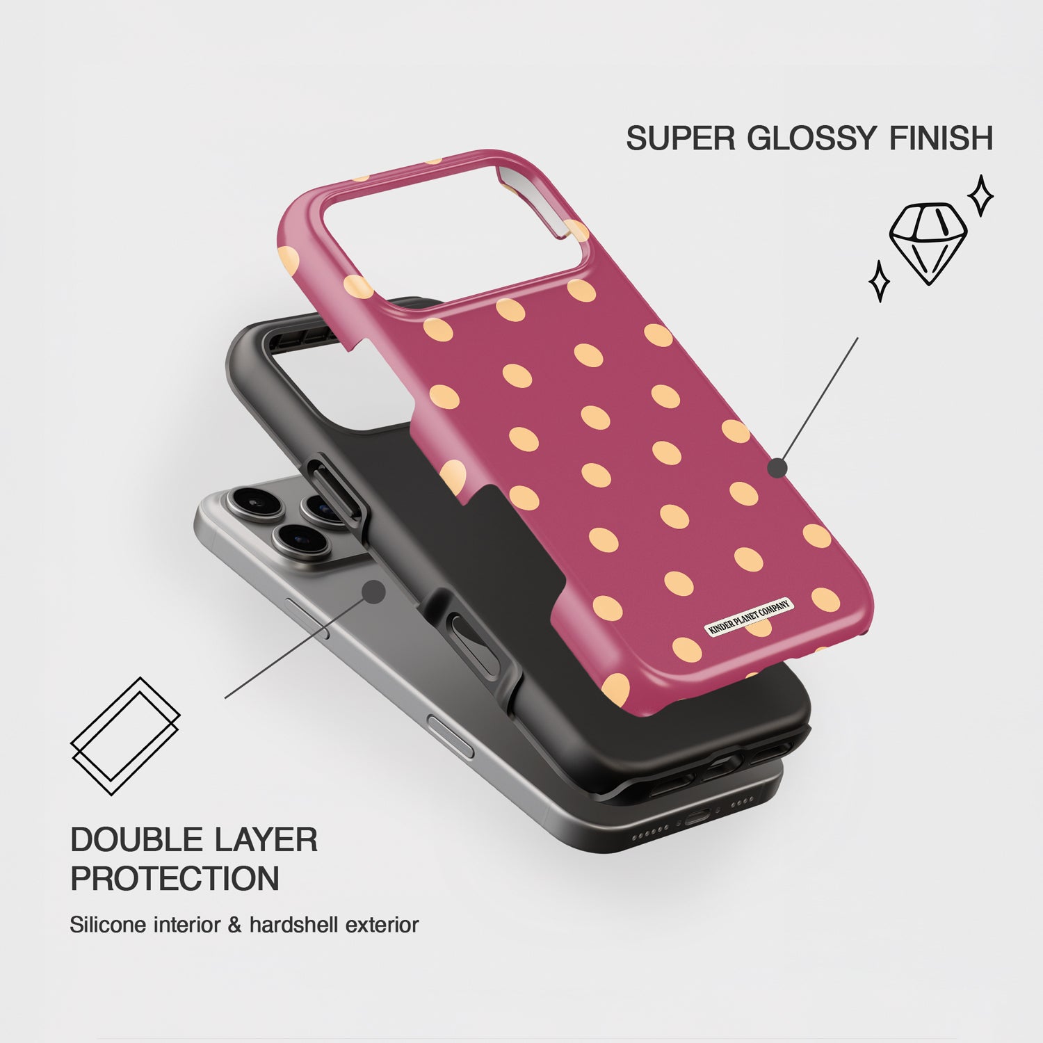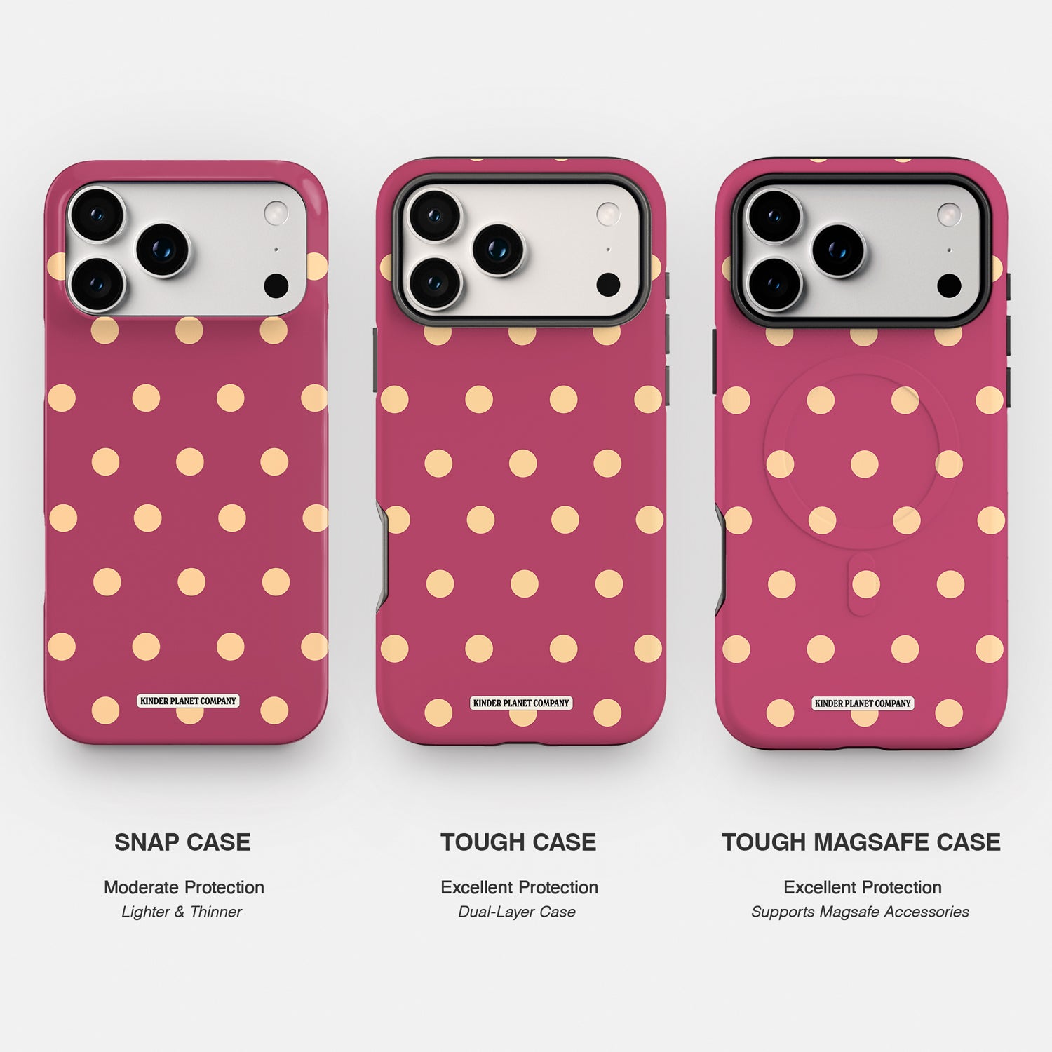 Sweet, playful, and instantly eye-catching, the Honey Berry Phone Case brings a pop of berry pink with soft golden polka dots.