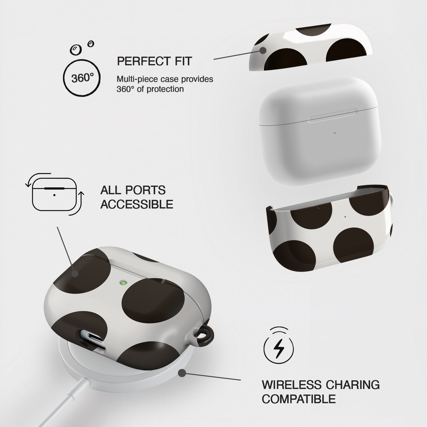 Built to handle every drop, twist, and bag-shuffle without giving up its style. Made from a durable hard-shell material that wraps your earbuds in 360° protection.