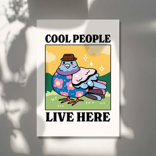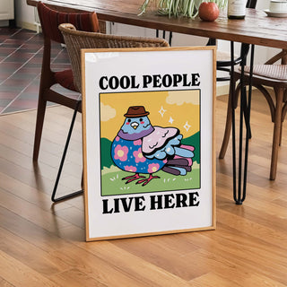 'Cool People Live Here' Yellow Pigeon Print