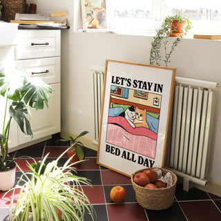 'Let's stay in bed all day' Cat Print