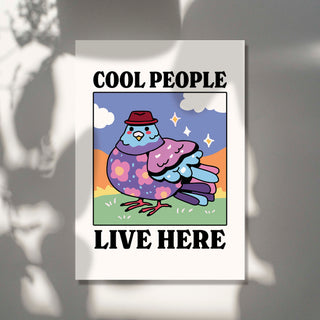 'Cool People Live Here' Blue Pigeon Print