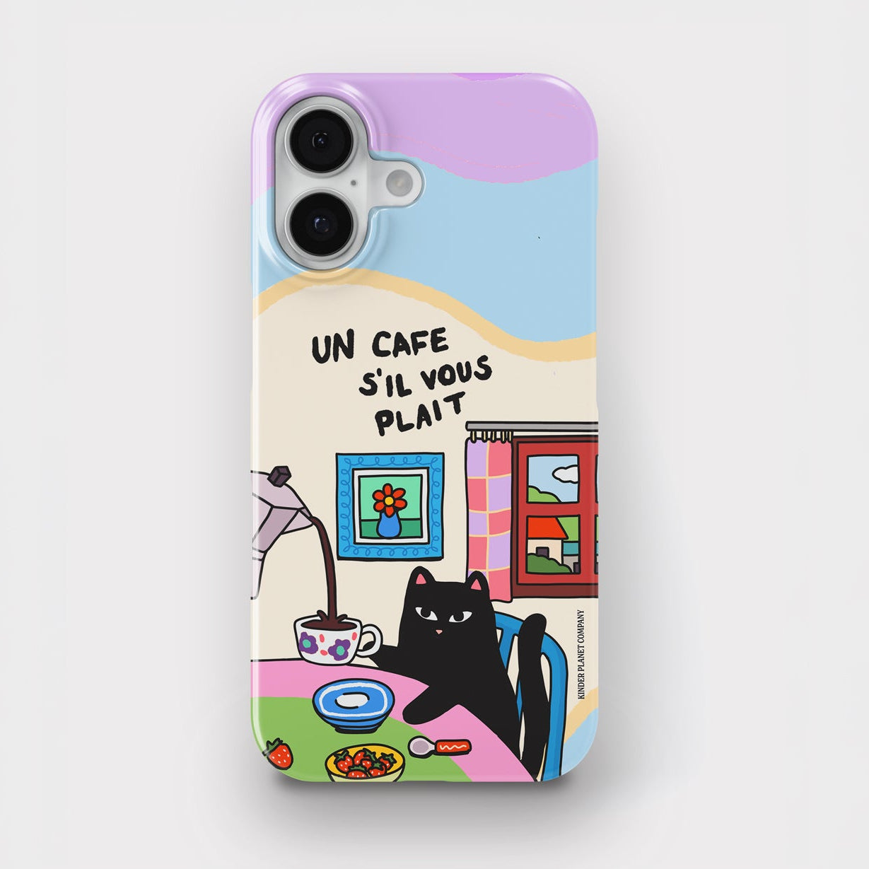 Un Cafe S'il Vous Plait Coffee Cat Wavy Snap Phone Case