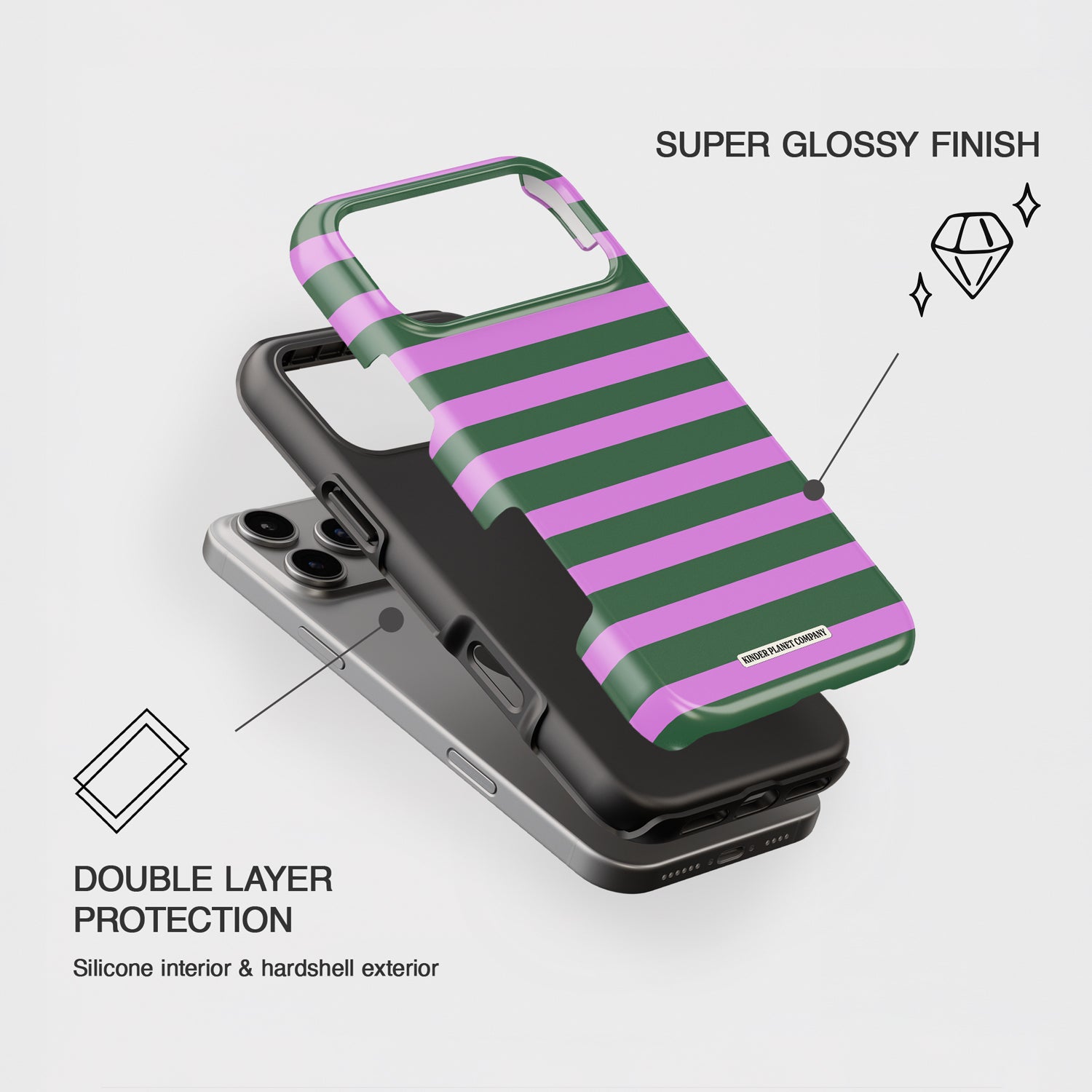 This statement-making case features striking green and vivid pink stripes that demand attention in the best way. Playful yet powerful, the bold contrast creates a look that’s confident, expressive, and impossible to overlook. It’s giving main-stage energy with a fun, fearless twist.