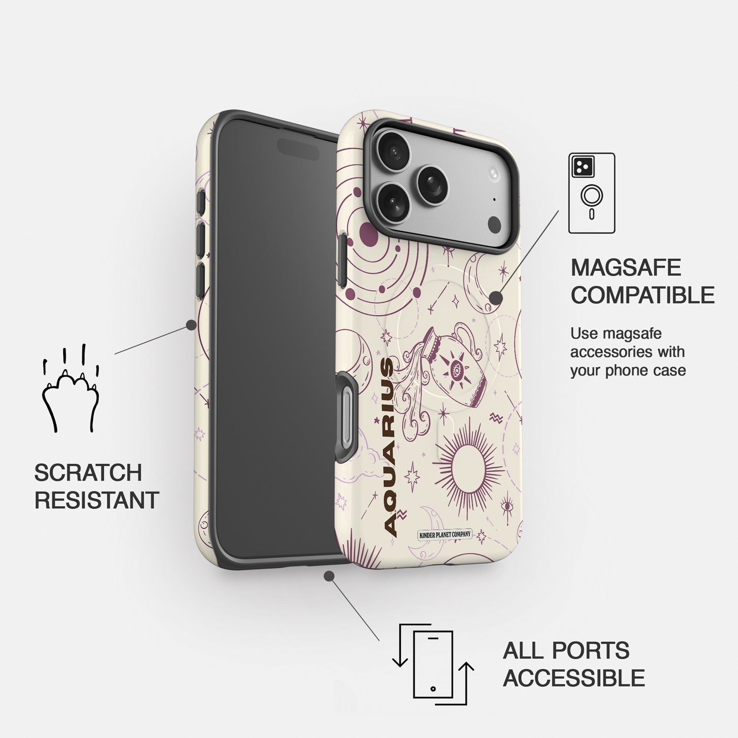 Designed for free-thinkers, creatives, and rule-breakers, this case features a sleek Aquarius zodiac design with a modern, minimalist feel. Beneath the aesthetic, it’s built tough: dual-layer protection keeps your phone safe from drops, bumps, and daily chaos, while full MagSafe compatibility makes charging effortless.