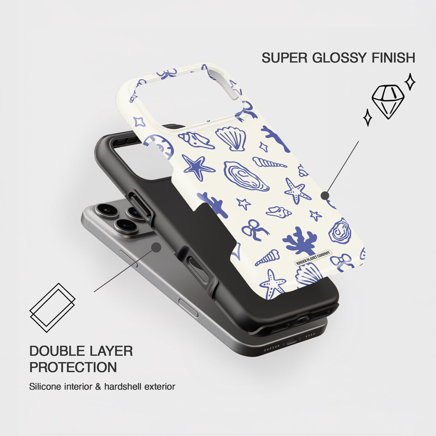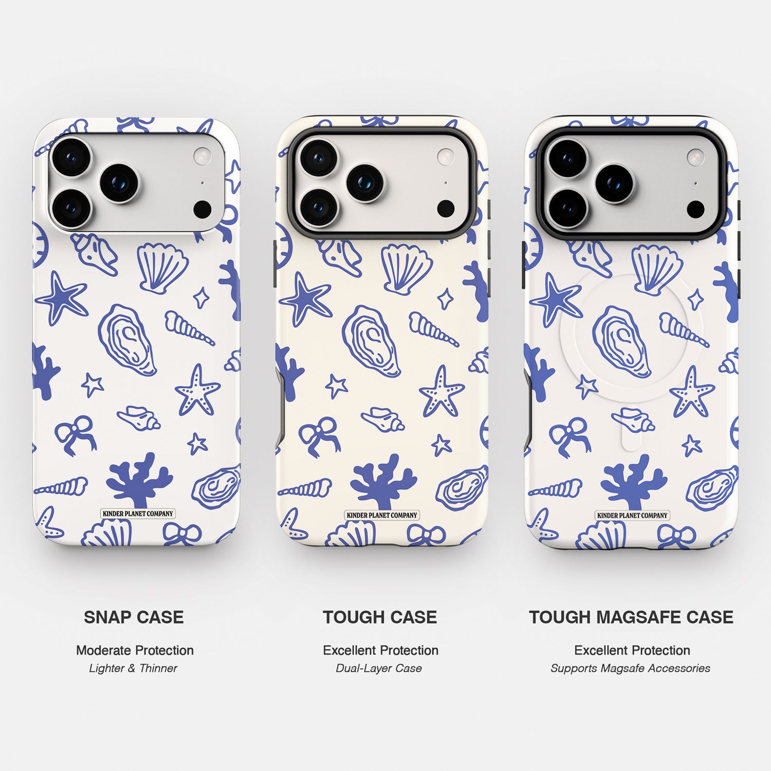 Shell yeah 🌊✨ Say hello to your new seaside sidekick. The Ocean Explorer iPhone Case is giving major summer vacay vibes with playful doodles of starfish, oysters, and coral in dreamy blue hues. Made for beach babes and mermaid minds, this case doesn’t just look cute – it’s also tough enough to handle all your sandy adventures.