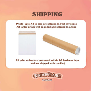 - Unframed Prints are shipped in sturdy board-backed envelopes or postage tubes